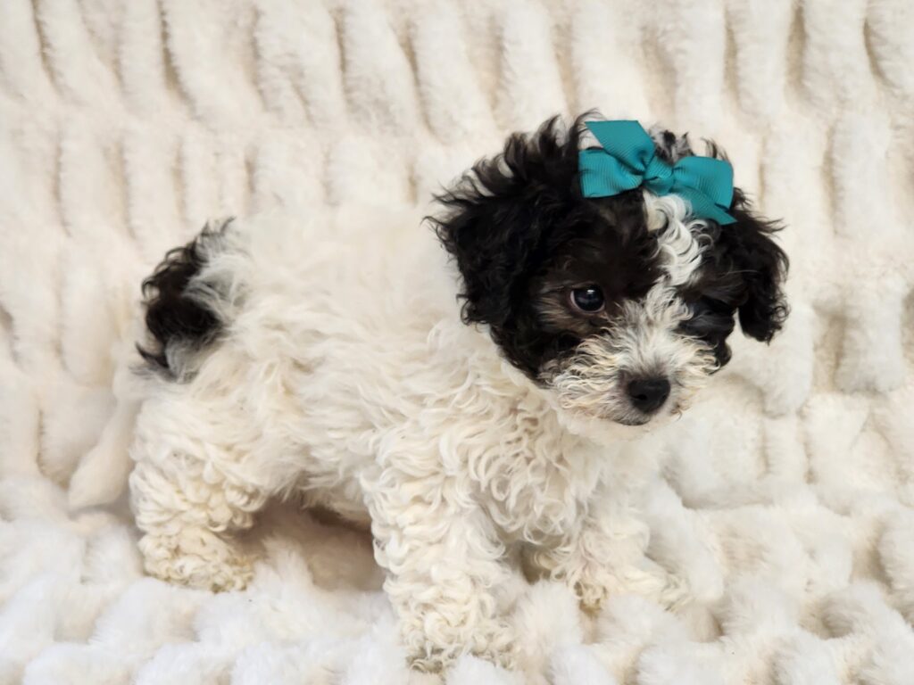 Meet Pebbles She is precious and simply adorable with her fluffy black and white coat and gorgeous bow. If you like kisses and want a small female, then Pebbles is for you. S