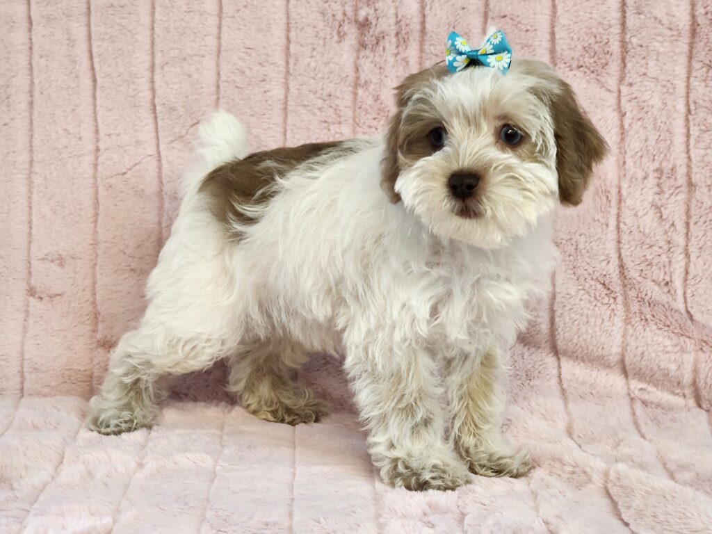 Meet Skylar, a chocolate and white cuddle bug. She comes to your home with her vaccinations current along with a health guarantee.